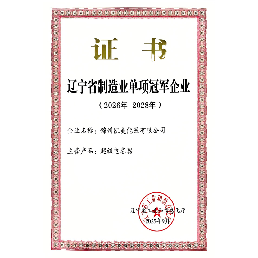 錦州凱美能源有限公司再次榮獲"遼寧省制造業單項冠軍企業"稱號,實現連續獲評。這是公司在超級電容器領域深耕近20年、繼國家級專精特新"小巨人"等榮譽后,獲得的又一省級權威認可,充分彰顯了公司在細分市場的領先地位和核心競爭力。